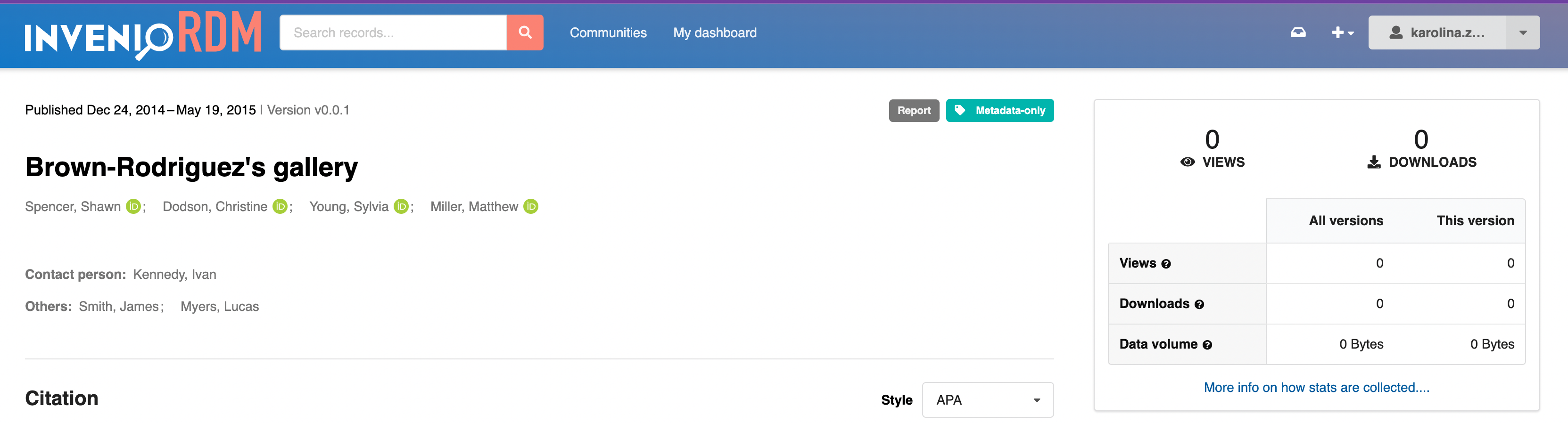 A notable feature of our implementation is the heavily customized frontend, which provides a minimalist and modern interface. By simplifying the user experience, we've created an intuitive platform that meets the unique needs of a dark archive, where data is primarily stored for preservation purposes rather than dissemination. This approach allows researchers to easily deposit and manage their data, while also ensuring the long-term integrity and authenticity of the archived materials.